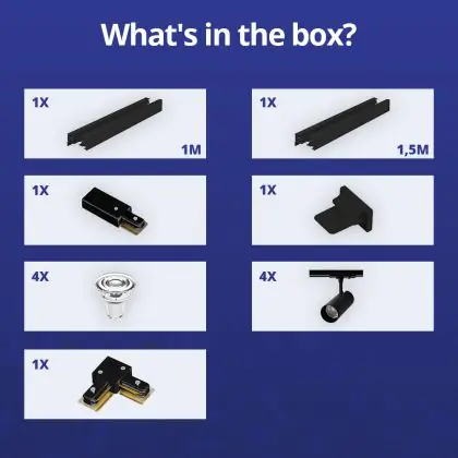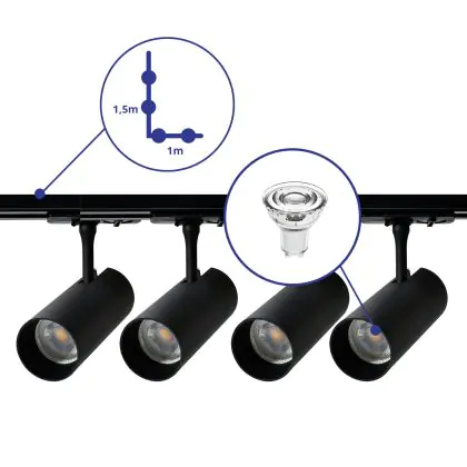 | Nome del fabbricante | Complete L shaped 1-Phase Track Set Black incl. 4x Spot fixture + GU10 2700K 3W Dim - 1 x 1,5 meter | |