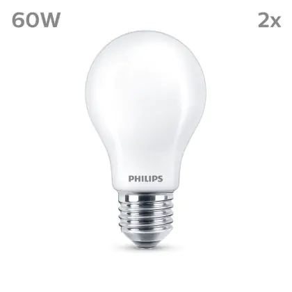 La Confezione Multipack 2x Philips Bulbo LED E27 Pera Ghiaccio 7W 806lm - 827 Bianco Molto Caldo è la perfetta sostituzione per la tua lampada convenzionale W con attacco E27 grazie alla sua tecnologia LED. Passare a LED ti offrirà tanti vantaggi!