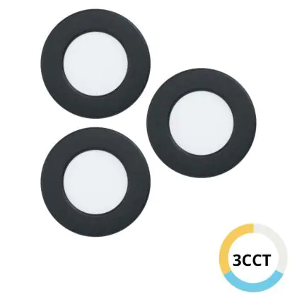 Confezione Multipack 3x Eglo Incasso Faretti Fueva 6 Plastica Nero 11.1W 1350lm - 827-840-865 CCT