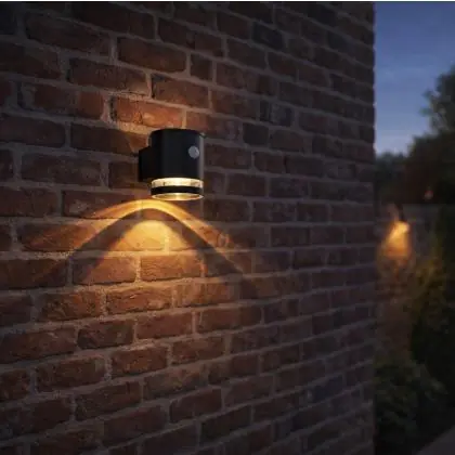 Descrizione D'Lite Luce Da Parete Solis Solar Nero Up & Down - 830 Luce Calda - | IP54 - Sensore Di Movimento