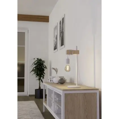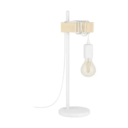 Eglo Lampada Da Tavolo Townshend Acciaio Bianca Legna | IP20 - Adatto per 1x E27