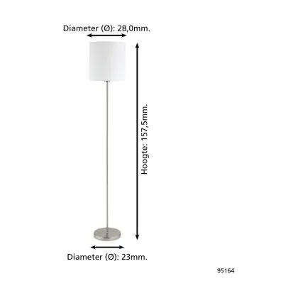 Eglo Lampada da terra Pasteri Acciaio Nichel Satinato Bianca | IP20 - Adatto per 1x E27