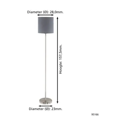 Eglo Lampada da terra Pasteri Acciaio Nichel Satinato Grigio | IP20 - Adatto per 1x E27