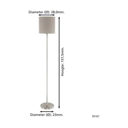 Eglo Lampada da terra Pasteri Acciaio Nichel Satinato Taupe | IP20 - Adatto per 1x E27