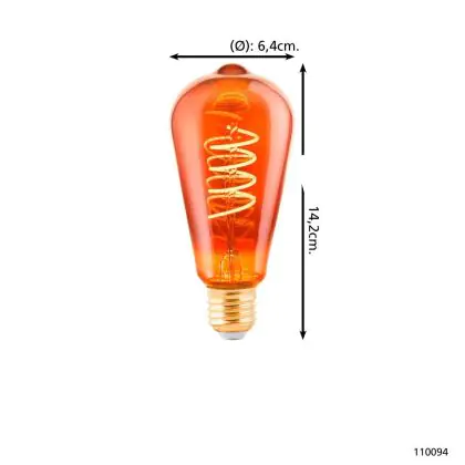 Descrizione Eglo LED Edison E27 Filamento Ambra 4W 30lm - 820 Bianco Molto Caldo | Dimmerabile - Sostitutiva 15W