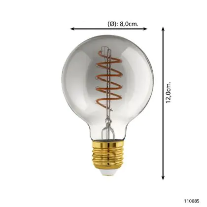 La Eglo LED Globe E27 Filamento Smokey 4W 100lm - 820 Bianco Molto Caldo | Dimmerabile - Sostitutiva 15W è la perfetta sostituzione per la tua lampada convenzionale 15W con attacco E27 grazie alla sua tecnologia LED. Passare a LED ti offrirà tanti vantaggi!