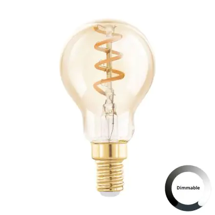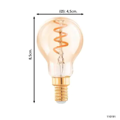 Descrizione Eglo LED Sferica E14 Filamento Ambra 4W 145lm - 820 Bianco Molto Caldo | Dimmerabile - Sostitutiva 15W
