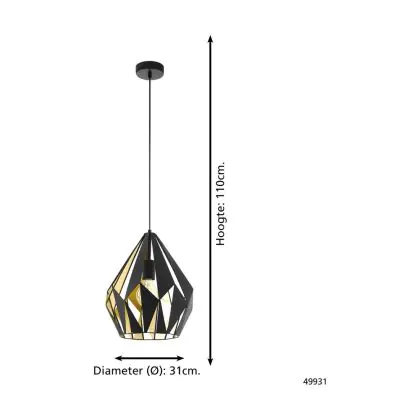 Eglo Luce Pendente Carlton 1 Acciaio Nero Oro | IP20 - Adatto per 1x E27