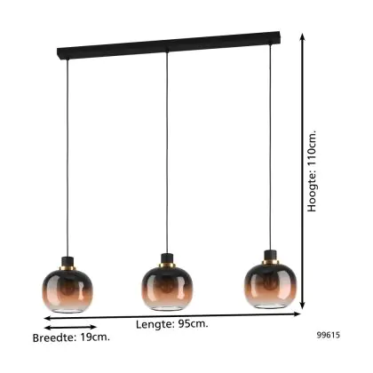 Eglo Luce Pendente Oilella Acciaio Nero Oro | IP20 - Adatto per 3x E27