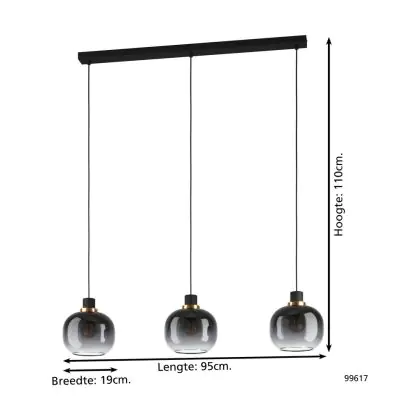 Eglo Luce Pendente Oilella Acciaio Nero Oro | IP20 - Adatto per 3x E27
