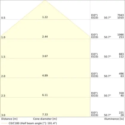 L'apertura del fascio luminoso indica l'angolo del fascio di luce proveniente da una lampada o lampadina. Si misura in gradi (D) e più piccolo è l'angolo, più piccola è l'apertura del fascio di luce.