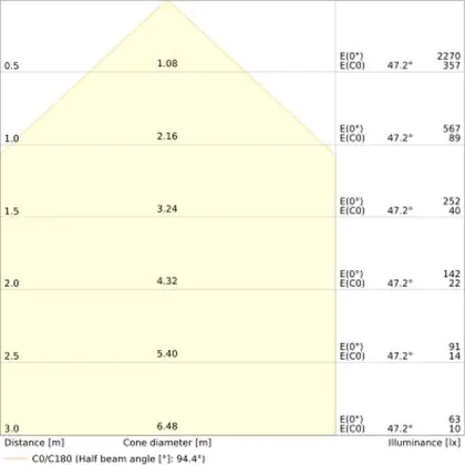 L'apertura del fascio luminoso indica l'angolo del fascio di luce proveniente da una lampada o lampadina. Si misura in gradi (D) e più piccolo è l'angolo, più piccola è l'apertura del fascio di luce.