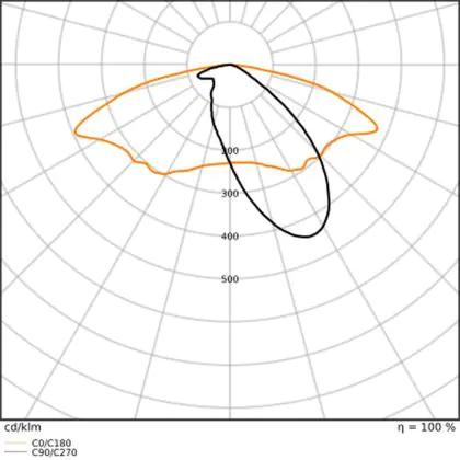 L'alloggiamento impermeabile di questa sorgente luminosa non è l'unica ragione per cui è perfetta per l'uso all'aperto. Infatti bisogna considerare anche la distribuzione della luce di questa lampada stradale, che ha apertura del fascio luminoso di 50x150° ed emette luce di colore .