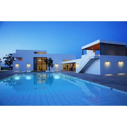 Questo apparecchio può essere usato sia in spazi interni che in spazi esterni, poiché ha indice di protezione contro l'ingresso di acqua e polvere IP44. In generale, un apparecchio con IP44 è resistente a schizzi di acqua e umidità, e può quindi essere installato in spazi esterni molto umidi o esterni riparati, come sono una tettoia. Un apparecchio che invece verrà esposto a intensi getti di acqua deve avere almeno IP54. Questa lampada ha anche un indice di resistenza a urti e impatti di IK03 - 0.35 joule.