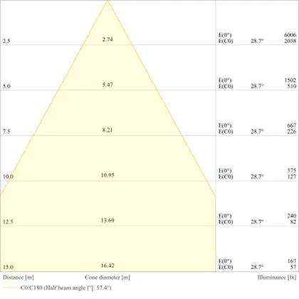 L'apertura del fascio luminoso indica l'angolo del fascio di luce proveniente da una lampada o lampadina. Si misura in gradi (D) e più piccolo è l'angolo, più piccola è l'apertura del fascio di luce.
