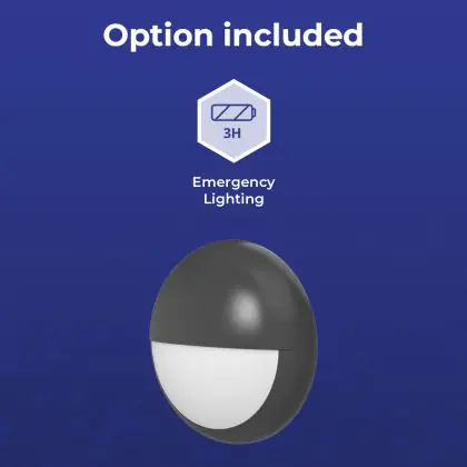 Descrizione Noxion Bulkhead LED Pro V2 12/16/20W 2400lm - 830-840-865 CCT | 325mm - IP65 - Emergenza 3H + Palpebra Il Anello Nero
