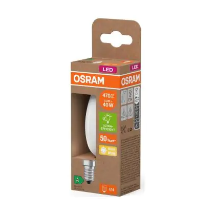 La lampada Osram LED Classic E14 Candela Filamento Ghiaccio 2.2W 470lm - 827 Bianco Molto Caldo | Sostitutiva 40W è il sostituto perfetto per le tue vecchie lampade 40W con attacco a vite piccolo E14 grazie alla sua tecnologia LED. Passare a LED ti offrirà molti vantaggi!