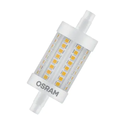 La Osram LED R7s 78mm Chiara 7.3W 806lm - 827 Bianco Molto Caldo | Sostitutiva 60W è perfetta per la sostituzione della convenzionale Lampada alogena 60W R7s con colore della luce 827 Bianco Molto Caldo. Questa lampada ha una forma e va alimentata con 220-240 Volt. Passare a led ha molti vantaggi!