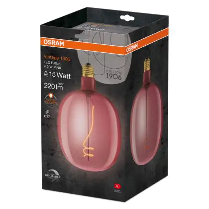 La Osram Vintage 1906 LED E27 Special Filament Colored 4.5W 220lm - 816 Extra Warm White | Dimmable è la perfetta sostituzione per la tua lampada convenzionale 15W con attacco E27 grazie alla sua tecnologia LED. Passare a LED ti offrirà tanti vantaggi!