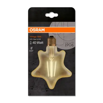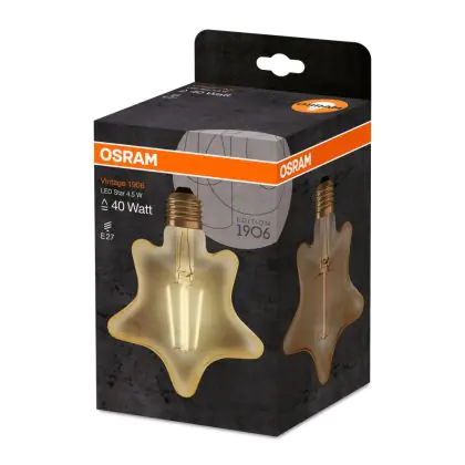 La Osram Vintage 1906 LED E27 Star Filamento Oro 4.5W 470lm - 825 Bianco Molto Caldo | Sostitutiva 40W è la perfetta sostituzione per la tua lampada convenzionale 40W con attacco E27 grazie alla sua tecnologia LED. Passare a LED ti offrirà tanti vantaggi!
