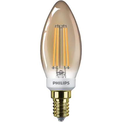 La lampada Philips Classic LED Candela E14 Filamento Oro 5W 350lm - 822 Bianco Molto Caldo | Dimmerabile - Sostitutiva 40W è il sostituto perfetto per le tue vecchie lampade 40W con attacco a vite piccolo E14 grazie alla sua tecnologia LED. Passare a LED ti offrirà molti vantaggi!