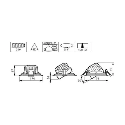Descrizione Philips Faretti LED Greenspace Accent Gridlight Aluminium Bianca 30W 3800lm 24D - 827 Bianco Molto Caldo | 154mm - IP20