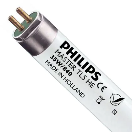 I Philips MASTER TL5 HE 35W - 840 Bianco Freddo | 145cm - UNP sono tubi fluorescenti di dimensioni inferiori rispetto ai T8 / TL-D. Si prega di controllare sempre la potenza e la lunghezza del tubo, in quanto sono correlati. Nel caso in cui si desideri effettuare una sostituzione di un tubo esausto è necessario acquistare un tubo con le stesse caratteristiche tecniche in termini di dimensioni e potenza. Per un elevato risparmio energetico si consiglia di scegliere soluzioni a LED..