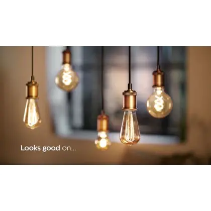 Questa lampadina a filamento LED E27 sostituisce le lampade ad incandescenza da 25W con un consumo di soli 5W a parità di resa luminosa.