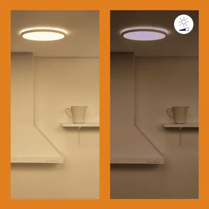 Per scegliere un apparecchio di illuminazione bisogna anche considerare dove verrà installato. Per esempio la luce di 2700 Kelvin (bianco molto caldo) e 3000 Kelvin (bianco caldo) creano un’atmosfera rilassante e piacevole. Questa tonalità è quindi molto adatta ad ambienti accoglienti o a zone generiche come corridoi, ascensori, disimpegni o pianerottoli. Una luce di 4000 Kelvin (bianco freddo), invece,è più luminosa e fresca ed è quindi adatta come illuminazione funzionale in uffici, aziende, scuole e biblioteche. La temperatura di colore di questa plafoniera LED è 2700K - 6500K bianco regolabile.